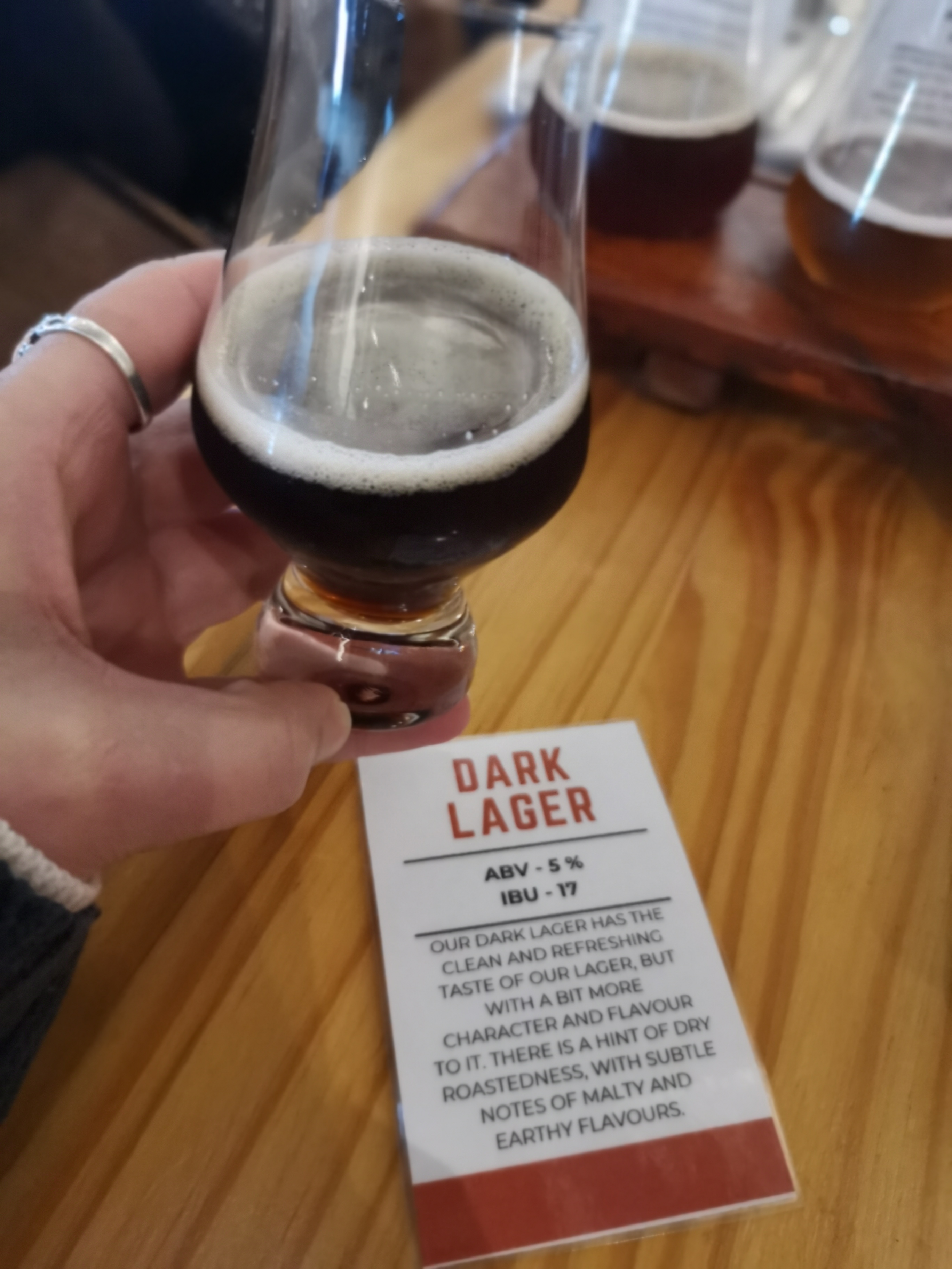 We tasted everything. The Pearly Pale Ale hit first, light and crisp with a whisper of citrus. Then came the Amber Ale, malt-forward and smooth, followed by the Dark Lager with its comforting roasted character.